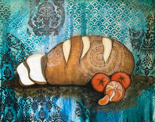 Learning and exploring has lead to showing and selling my work in solo and group exhibits and accepting the title of “artist”. I almost always have henna infused bits of whimsey on the go in the studio and am always learning new mediums and techniques. I really enjoy creating practical art, pieces painted intuitively and made into items for use. Paintings, cards, handmade journals, bags, pouches etc can be seen at my studio or in the Gift Shop in the Beaverlodge Cultural Centre.